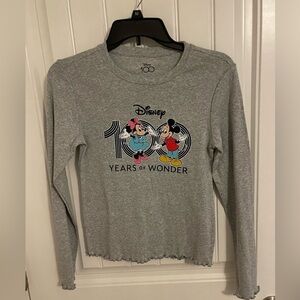 Embroidery Disney on gray T-shirt, 100 years of wonder, Mickey and Minnie mouse junior size medium