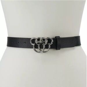 Disney Women's Black Faux Leather Belt with Silver Metal Mickey Minnie Mouse Ears Buckle