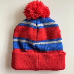 Hat is made of durable acrylic knit material for comfort and warmth.