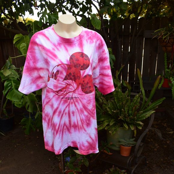 DISNEY MICKEY MOUSE NEFF T SHIRT SIZE LARGE NO HOLES OR STAINS, GENTLY USED. PINK TIE DYE