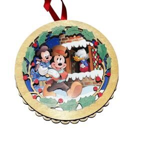 This is the 2023 Hallmark Disney Mickey's Christmas Carol 40th Anniversary ornament. This heirloom style Christmas tree ornament features a laser cut wood frame with an intricate papercraft scene of Mickey carrying Tiny Tim as Ebenezer Scrooge McDuck looks on. Celebrate the 40th anniversary of the beloved story with this charming decoration that makes a wonderful gift for Disney fans of all ages. It measures approximately 4" wide x 4.12" high x 1" thick.