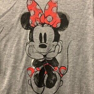 Great short sleeve T-shirt. Disney Minnie mouse size medium. 65% polyester 35% rayon. Decal is just silk screened on.-not raised. Dark gray in color.