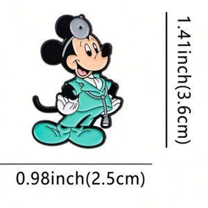 ITEM DESCRIPTION: This is a brand-new, unused enamel trading pin featuring cute little Mickey Mouse in green scrubs as either a doctor or nurse. Measures 0.98 in. W x 1.41 in. H. Super cute pin for the Mickey Mouse fan or a doctor or nurse.