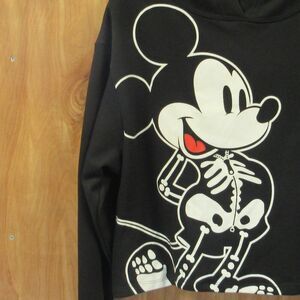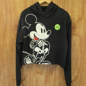 DISNEY Mickey Mouse Skeleton Cropped Hoodie Juniors Size XL Black Sweatshirt NWT