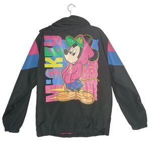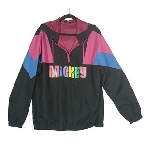 DISNEY Mickey Mouse Vintage Windbreaker Jacket 1/3 Zip Hooded Medium #500