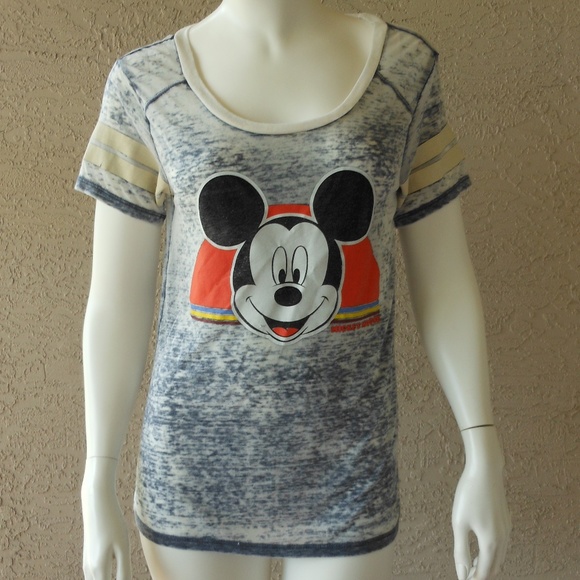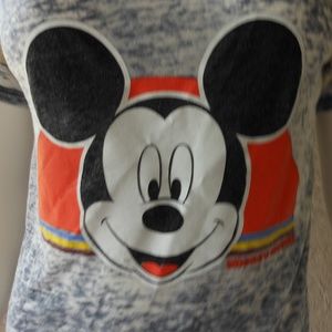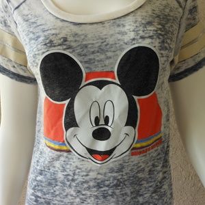Vintage Look Graphic Of Mickey, Tissue Thin Distressed Heather Navy Blue Shirt