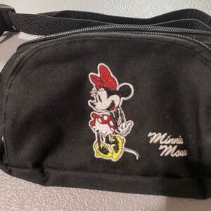 DISNEY Minnie Mouse Fanny Waist Pack Black Embroidered Zipper Pockets Adjustable