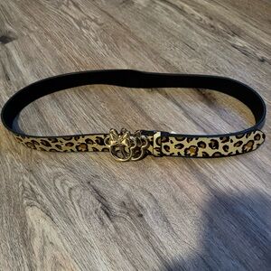 Stylish leopard print belt featuring a striking Minnie Mouse gold buckle. Perfect for adding a touch of DISNEY to any outfit. This belt is size 1X. 2 extra holes were added to give more size versatility and to be able to cinch tighter. Excellent gently used condition. No cracks or damage. Great with jeans. Please note—this belt is not leather.