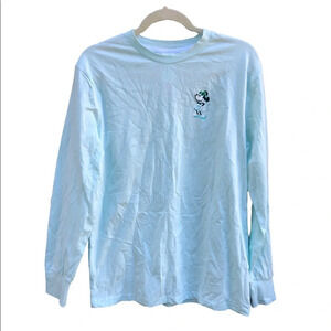 Pre owned. Like new condition. No flaws or signs of wear. Baby blue long sleeve tee with graphics. WOMENS size large.