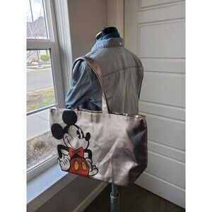 DISNEY PARKS EXCLUSIVE MERCHANDISE LARGE SILVER METALLIC TOTE BAG MICKEY MOUSE