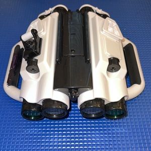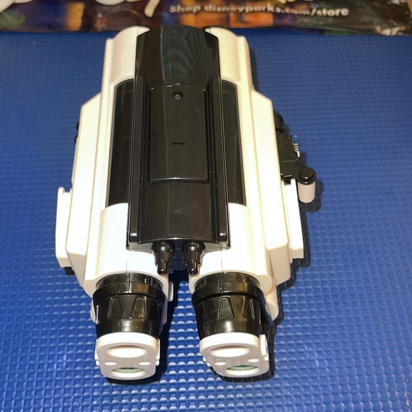 Used. DISNEY PARKS EXCLUSIVE-Quadnoculars Star Wars Cosplay Prop Toy Galaxy’s Edge. Used. Paint on handle peeled off a little, and left button for the light sometimes act up but everything else is in good condition. Green and Red light effect in place. Looks new but the defects mentioned. Needs new batteries.