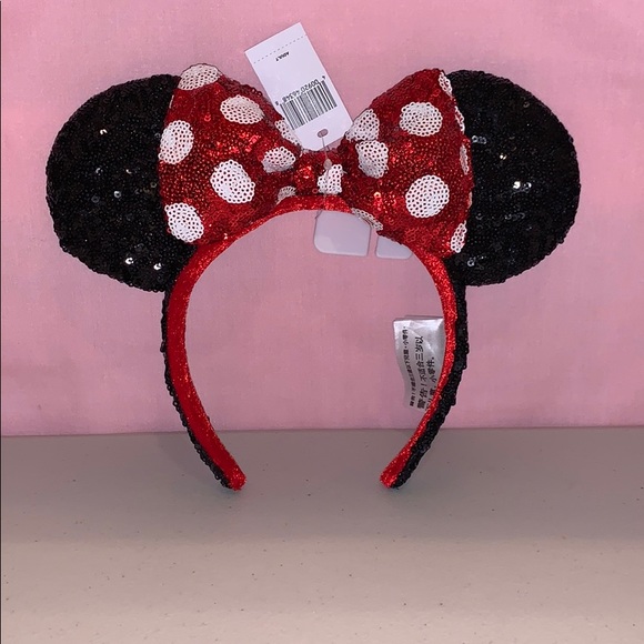 Minnie Mouse Ears fr Disneyland brand new w tags💖!!! Love them❤️!!! Glittery w red, black and white sequins fr outside of the headband, the ears and the bow. The inside of the headband is soft velvet for comfort!!