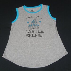 DISNEY PARKS TIME FOR A CASTLE SELFIE - GRAY WOMEN TANK TOP XS X-SMALL SHIRT L38