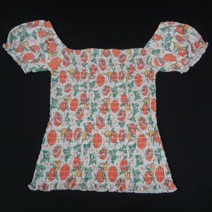 DISNEY PARKS VAULT 50 YRS ORANGE BIRD SMOCKED RUFFLED SMALL WOMENS T-SHIRT L185