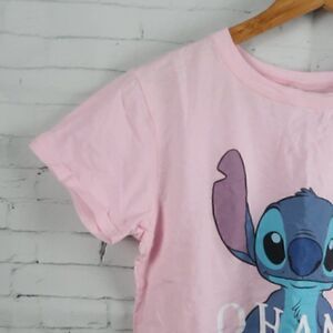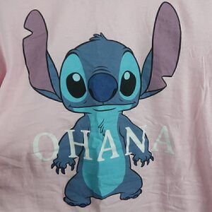 PINK LILO & STITCH OHANA SHORT SLEEVE CREW NECK COTTON T SHIRT JUNIORS SIZE LARGE BY DISNEY PRE OWNED NO FLAWS
