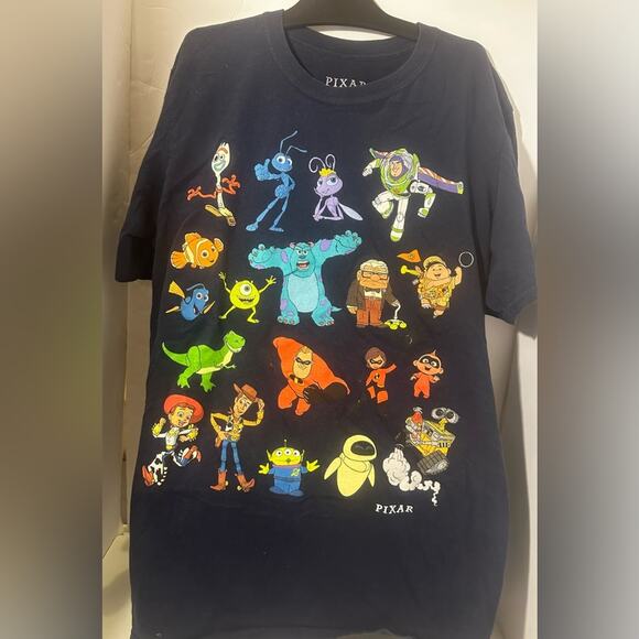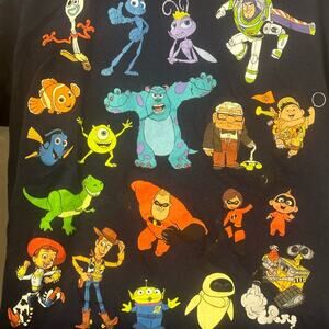 DISNEY PIXAR All Characters Colorful-BLACK Tee Shirt Medium EUC