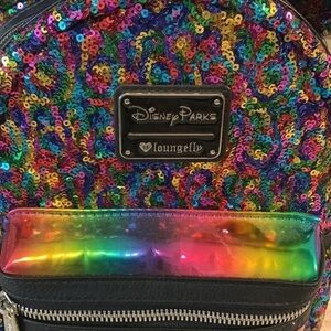 Disney Parks Loungefly Sequin Mickey Mouse Ears Rainbow Pride Mini Backpack New