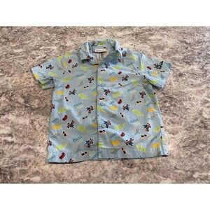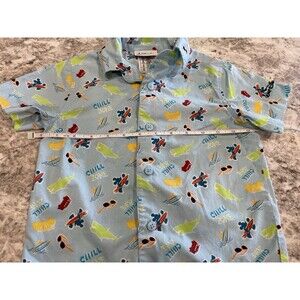 DISNEY Parks Mickey Mouse Hawaiian Button Down Shirt Size XXS Blue Surfin Chill