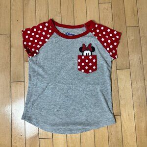 DISNEY Peek A Boo Pocket Minnie Mouse Polka Dot T SHirt Size Large 10-12
