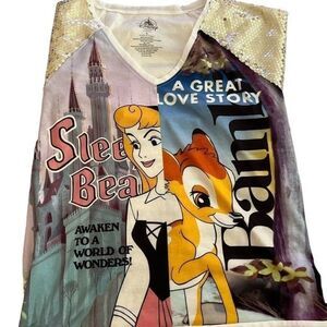 DISNEY SLEEPING BEAUTY BAMBI V-NECK SEQUIN TOP GIRLS Color White NWT size XL 100% AUTHENTIC AND BRAND NEW DISNEY