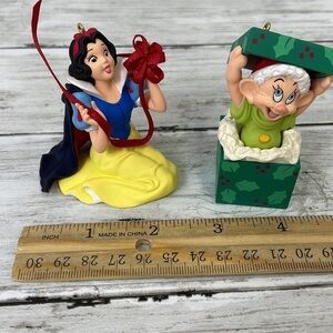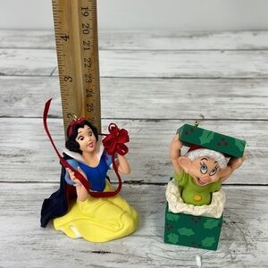 DISNEY SNOW WHITE & DOPEY HALLMARK ORNAMENT SET OF 2 VINTAGE