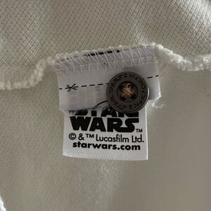 Perhaps the most awesome feature on this cool shirt, however, is the Death Star and TIE Fighter ships stitched on the breast! Embroidered in black to really stand out against the pale shirt, this semi-subtle detail adds so much Star Wars power to the top.