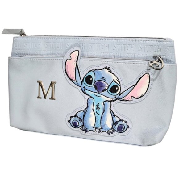 DISNEY STITCH AT PRIMARK Light Blue "M" Monogram Double Zip Clutch