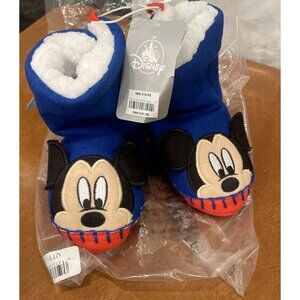 Mickey Mouse Disney store slipper boots, open in the back hook and clasp to get on/ off easier. They are blue and red and fur lined. US Size is 7/8