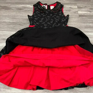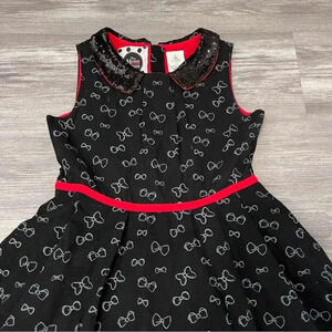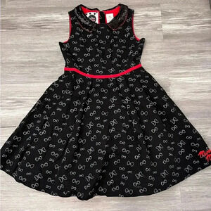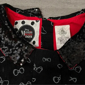 DISNEY STORE Minnie Rocks the Dots Bow Print Dress Black Sequin Collar Sz 11-12