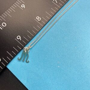 DISNEY Silver Initial M Necklace Mickey Rhinestones Charm Size 18". Necklace is on lovely thin dainty chain and marked Disney on backside of Mickey rhinestone charm. Overall in very good condition and appear may have only been gently worn, if at all. #42-B