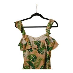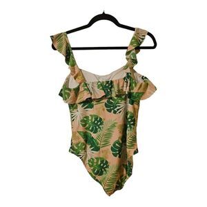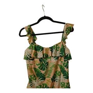 DISNEY Small World One Piece Ruffle Swimsuit Gold Mickey Print - Size Large