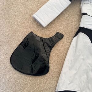 Includes Stormtrooper bodysuit, helmet mask, detachable belt, and shoulder pauldrons to represent different rankings (WHITE SHOULDER PATCH IS MISSING)