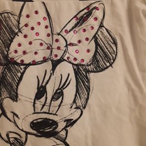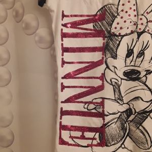 Super cute, Disney's minnie mouse tee from the Disney store. Red, white, and black. Name minnie spelled out in red sequins. Minnie's bow has crystals. Tee is in VERY GOOD PRE-OWNED CONDITION ๐. Size 10-12