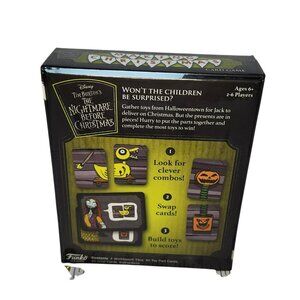 This officially licensed Funko Disney Nightmare Before Christmas game is designed for 2–6 players, ages 6+, making it a versatile choice for kids, teens, and adults alike. Players race to swap cards, build clever toy combos, and score points by completing the most toys—straight from the quirky world of Halloweentown.