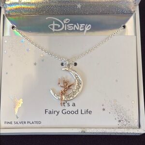 Disney Classics Womens Crystal Pure Silver Over Brass Moon Tinker Bell Pendant Necklace.