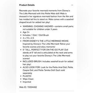 DISNEY The Little Mermaid Disney Princess Live Action Petite Mala Doll