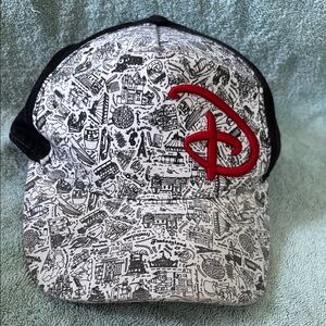 DISNEY Theme Parks Snapback Hat Baseball Cap Graphic Black White Big Red D News