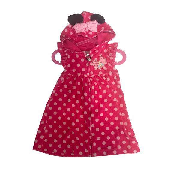 DISNEY Toddler Minnie Mouse Hooded Terry Polkadots Cover Up Dress in Pink Size 3
