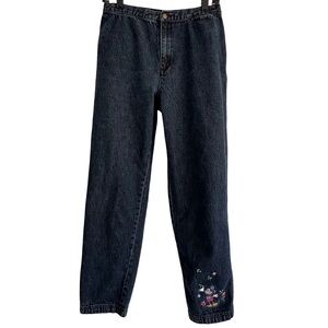 DISNEY Vintage Mickey Mouse Embroidered Flowers Blue Jeans Denim High Rise M