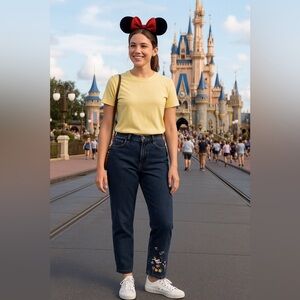 Disney Mickey Minnie cartoons florals embroidered vintage weekend casual denim hi rise comfortable Disney world Disneyland cartoon classic preppy artsy theme park princess denim basics