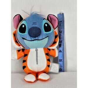 DESCRIPTION: Celebrate Disney's 100 Years of Wonder with this adorable plush toy featuring Stitch from "Lilo & Stitch" dressed in a Tigger costume. This unique collectible combines two beloved Disney characters into one charming piece, making it a must-have for fans and collectors alike.
