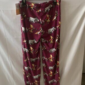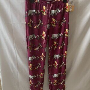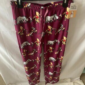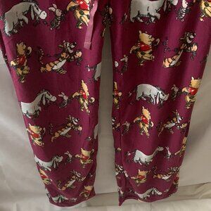 DISNEY Winnie the Pooh & Friends Flannel Fleece Sleep Lounge Pants in Wine Sz M
