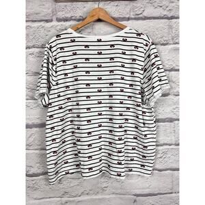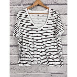 DISNEY Women's 2XL Black White Striped Minnie Mouse Silhouette V-Neck Cotton Top