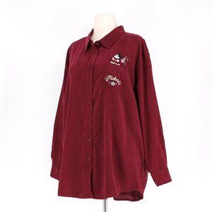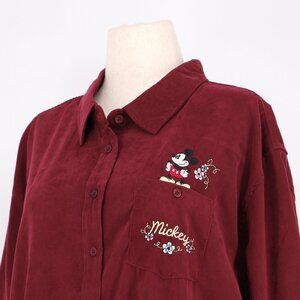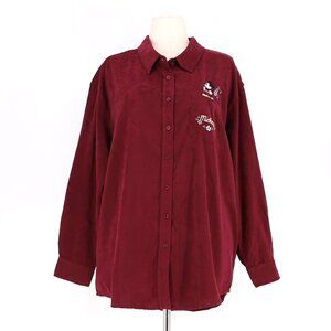 DISNEY Women's Button Front Top Mickey Floral Embroidered in Burgundy Size 1X