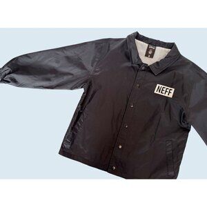 Super cute Disney X Neff nylon youth jacket. Allover black with Disney graphic on back. Snap buttons Collar. Pockets. Some scrapes on buttons. Some minor signs of wear from previous ownership. Overall really great condition!!
