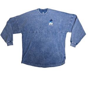 Spirit Jersey x Disney Parks cast member exclusive spellout blue washed denim oversized unisex long sleeve tee shirt. Rare! Cotton.