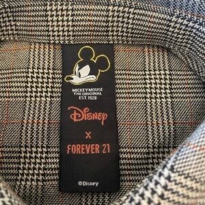 DISNEY x FOREVER 21 Crop Button Down Shirt, Size Small. The Mickey icon on front and the MICKEY written on back are sewn on. This is totally a 90’s vibe shirt and in almost perfect condition.