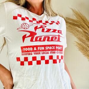 DISNEYLAND Disney White Red Toy Story Pizza Port Logo Short Sleeve Tee Shirt M