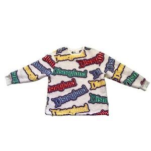 DISNEYLAND FUZZY PLUSH PULLOVER CREWNECK SWEATER RARE RETRO JUMBO LOGO