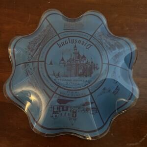 DISNEYLAND Vintage 70's Ruffled Glass Plate Souvenir Sleeping Beauty's Castle
